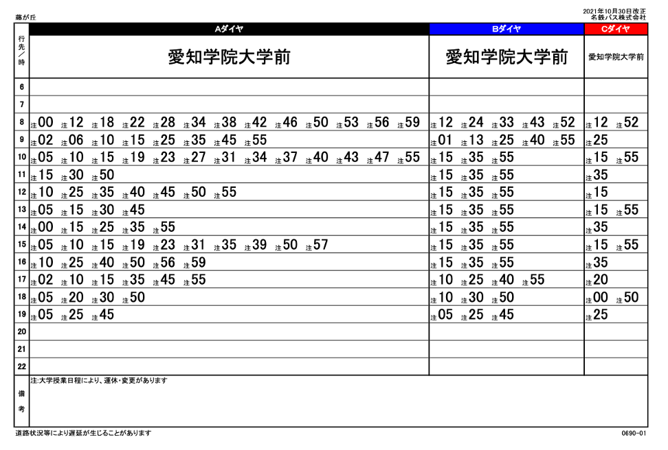愛知学院大学日進キャンパス(藤が丘駅からバス11分)